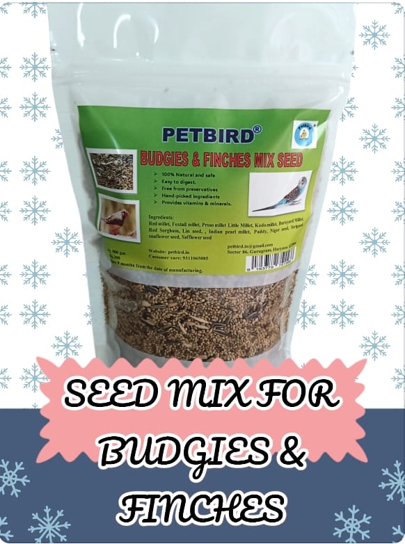 Perfect nutritional food for Budgies and Finches. Premium seed mix contains white millet, red millet, proso millet, canary seed, flax seeds, Niger seeds, oats, hemp seed, safflower.